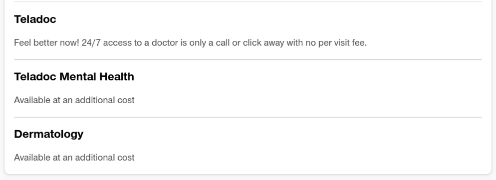 Mental Health and Dermatology have an additional charge but normally could be cheaper than in person.